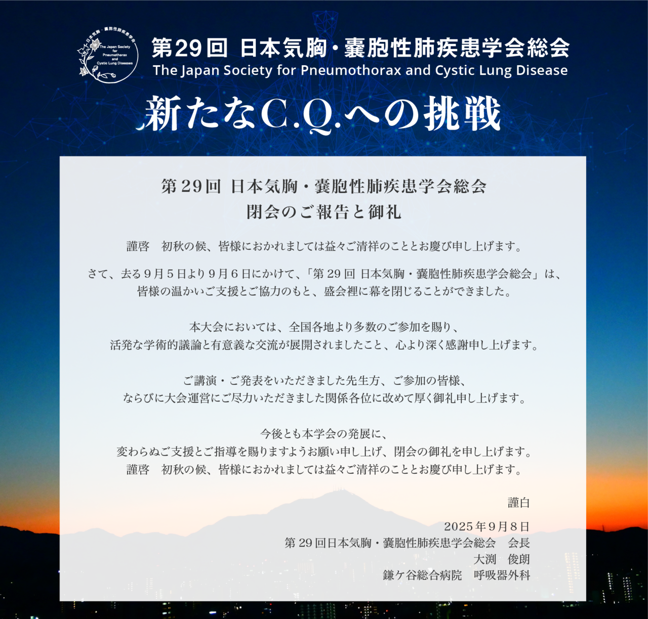 第29回 日本気胸・嚢胞性肺疾患学会総会